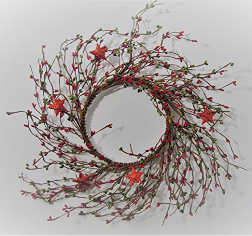 Christmas Holiday Pip (Rice) Berry and Tin Red Glittered Star WREATH, GARLAND, or CANDLE RING (Buyer Choices) (14 inch wreath)