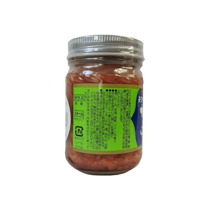 원재료:가다랭이 내장(가고시마현 마쿠라자키산)고, 식염,발효 조미료,설탕,조미료(아미노산등)고, 감미료(감풀,스테 비어)고, 솔 비트,홍국색소(원재료의 일부에 대두,젤라틴을 포함한다)