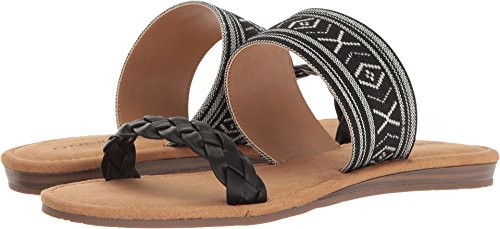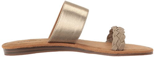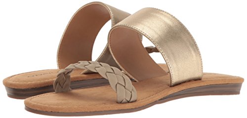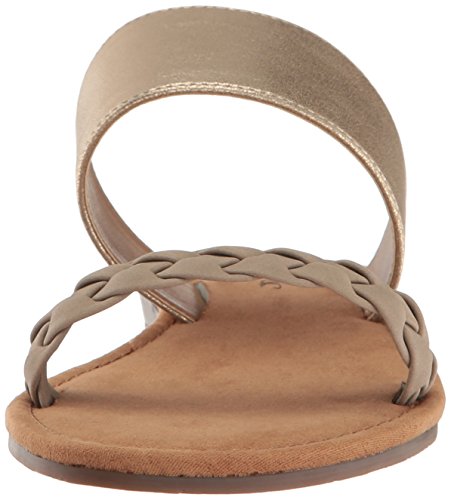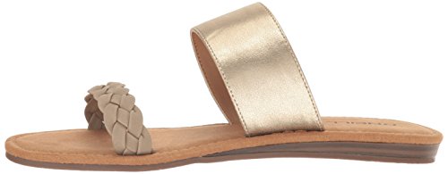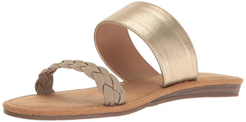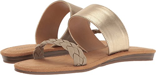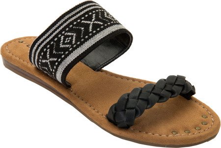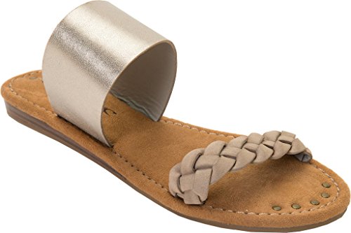 Product DescriptionBraided faux leather and woven fabric or metallic pu upper straps, slip on entry, faux suede topsole with stud detail, sandal outsole.0