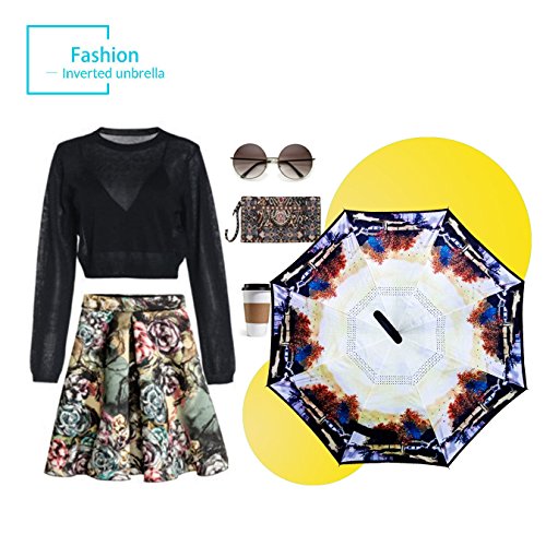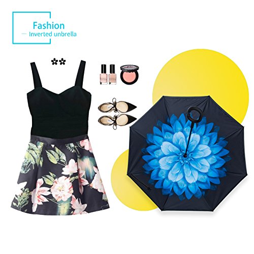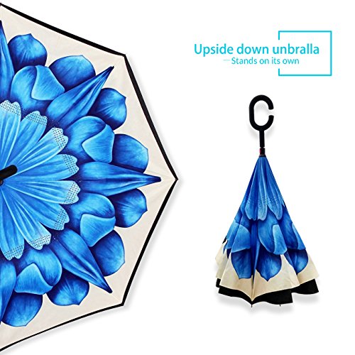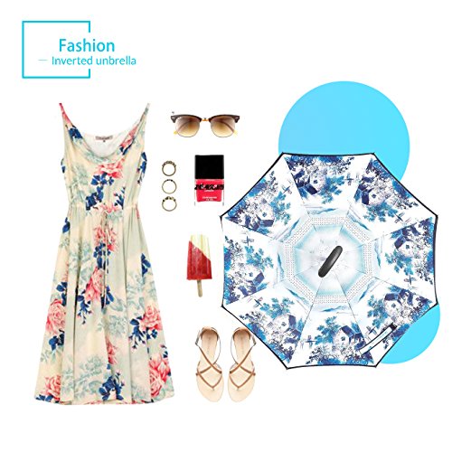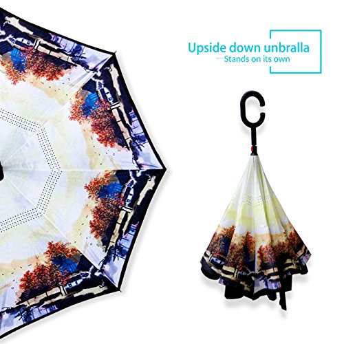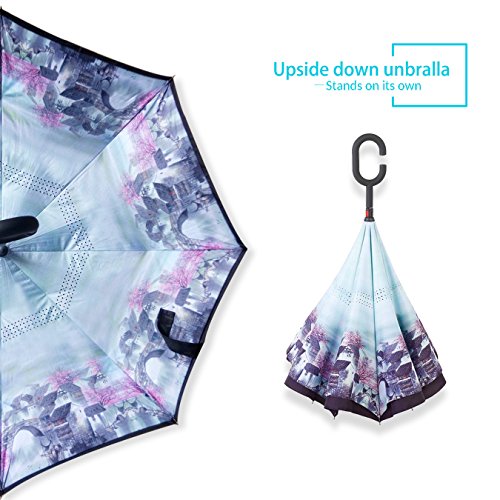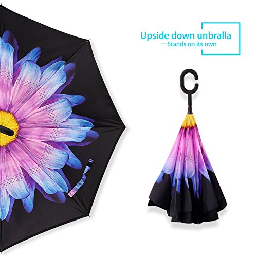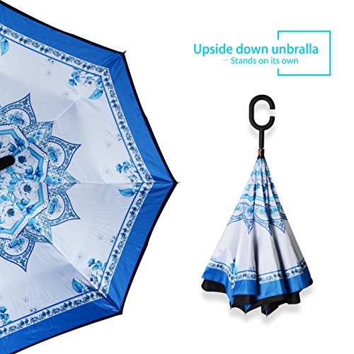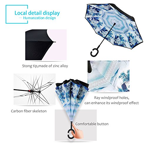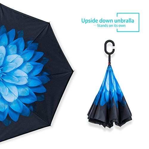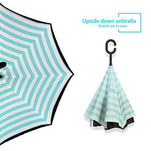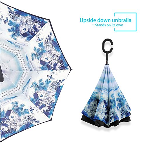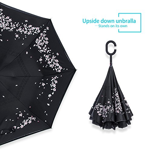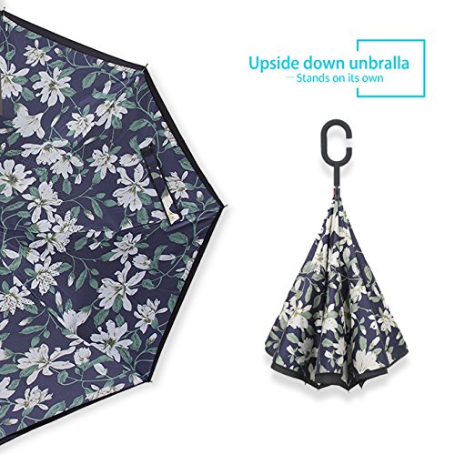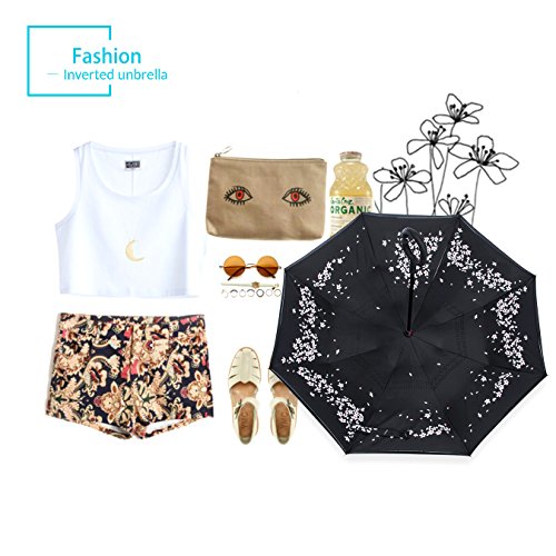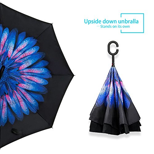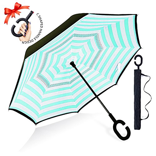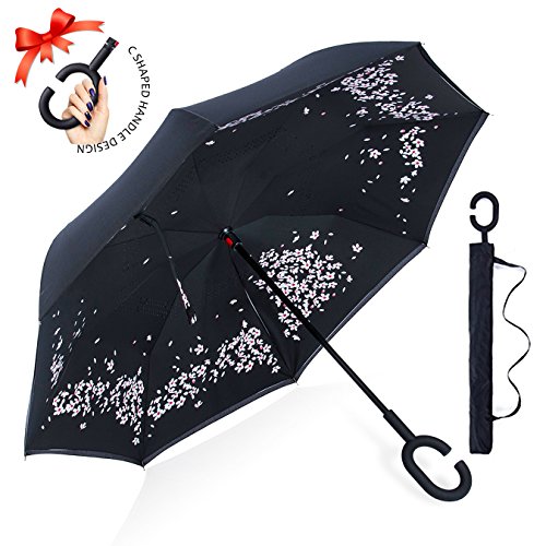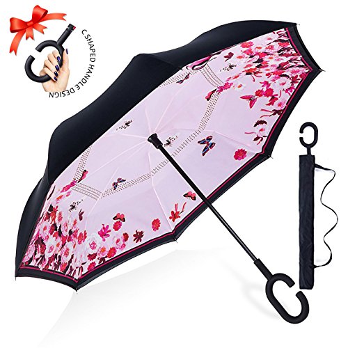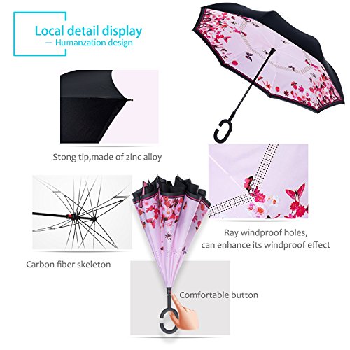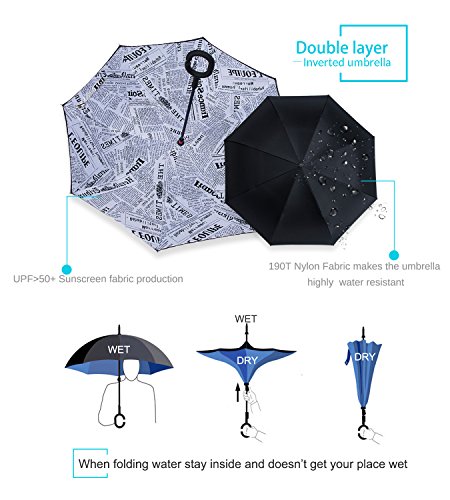Studio : ZOMAKE Publisher : ZOMAKE Product Description 1.This novel inverted umbrella is a great gift for your friends,parents,lovers etc. 2.Windproof and waterproof,Uv protection,perfect for rainy day or sunny day. 3.Control:Non-automatic Open Length 42.5 inch Folded Length 31.5 inch. 4.Fashion C shape handle,cross the C-shape handle over your arm and made you hands free. 5.Unique design of double inverted umbrella,inside-out design prevents water from dripping, keeping floors and cars dry. 6. The double layer inverted umbrella made of:pongee cloth, durable black electric ribs and double layer ribs make the cars umbrella more sturdy, enhance its windproof effect. 7.The inverted umbrella can stand up on its own, ideal for when you have nowhere to prop your umbrella up against.It will also keep the wet part of the umbrella inside once you've closed it. 8.With a simple click of the embedded button, you can open and close the umbrella in confined spaces when entering or exiting a building or car and it's less awkward and more safer to open and close when in crowds, since the danger to poke in people's eyes has been removed by the design.