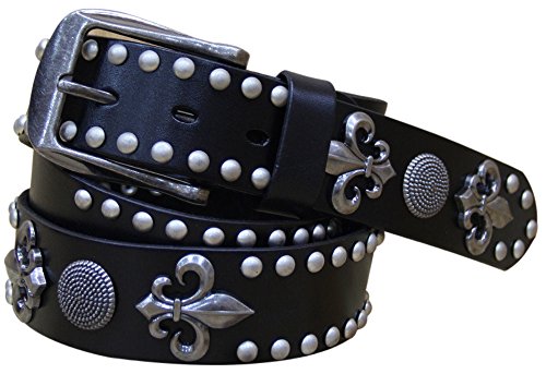 -. Feature : サイズ 長さ105〜125cm、幅3.8cm / ジーンズや革パンツに相性抜群の、ユリ紋章、コンチョ、スタッズの装飾を全面に施したベルトです / ハードなファッションのメインにも、普段着のシャツからチラッと覘かせても、存在感あるベルトです / 他に、スカルコンチョのデザインもございます。 / 牛革製。天然素材につき個々に使用部分が異なります為、色味に若干の違いがございますので、ご了承くださいませ。