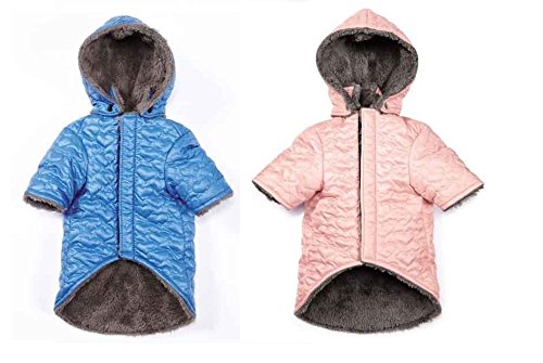 -. Title : Warm Elements Quilted Hearts Polyester Dog Jackets Removable Hood Blue or Pink(Large Blue)