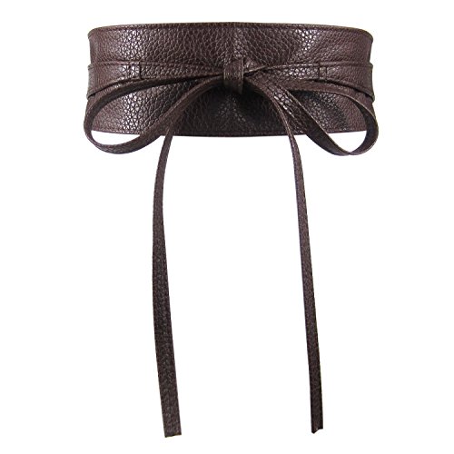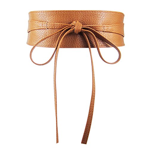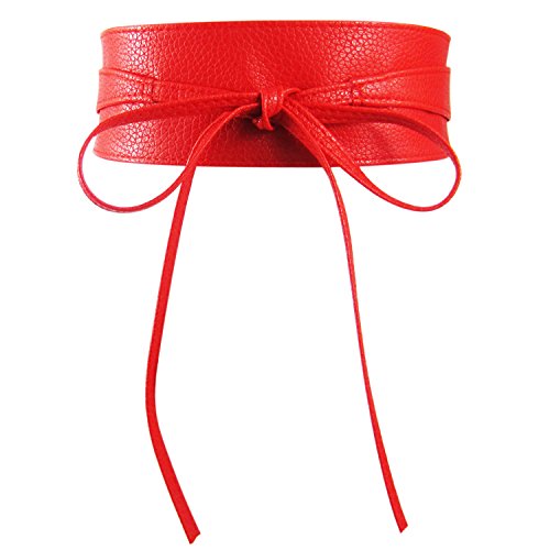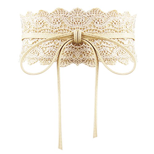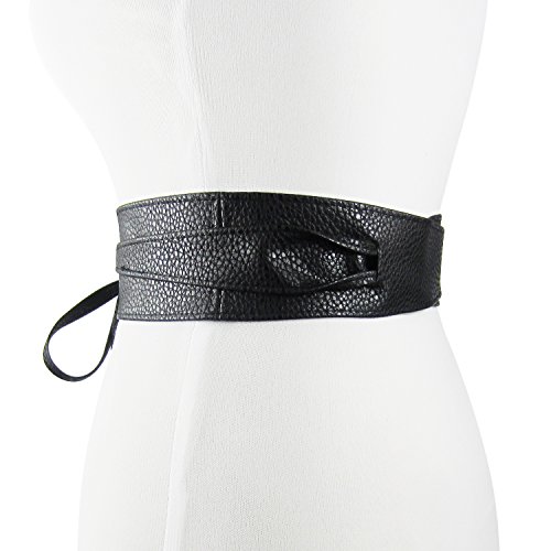 Specification This fashionable Wrap-around tie fastening ,obi style leather waist belt, with crochet lace design ,will help to cinch your waist for an hourglass shape.