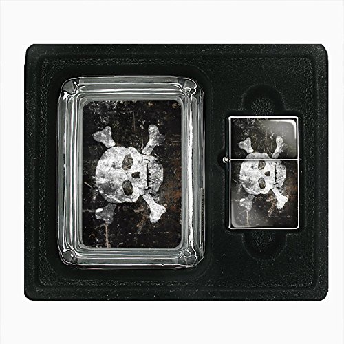 -. Title : Vintage Pirate Ship S2 Custom Glass Ashtray Gift Set with Flip Top Oil Lighter In Velvet Box Smoking Retro High Seas