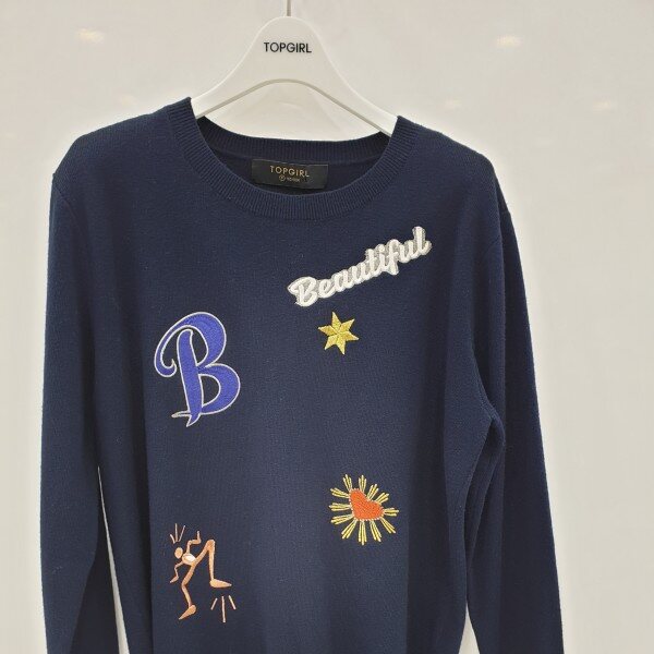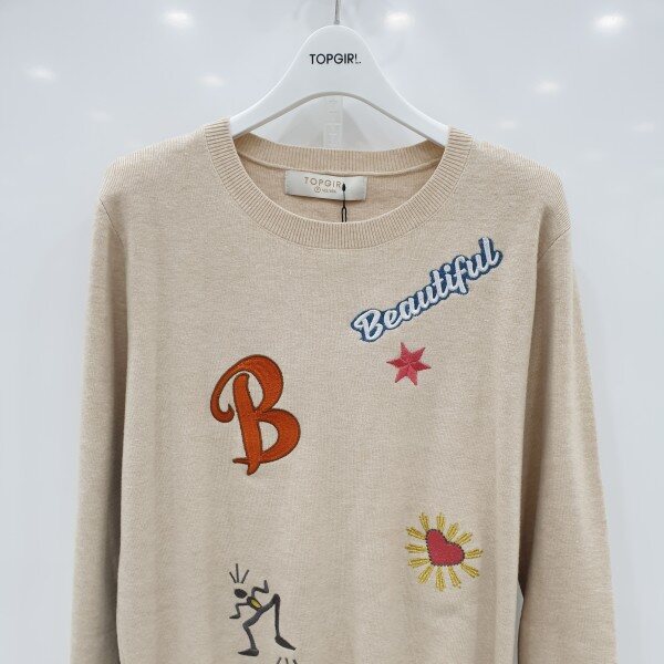 알록달록 자수가 포인트인 라운드 니트예요.데일리 청바지,스커트 어디에 입어도 예쁘고 색감있게 포인트를 줄수 있는 디자인 입니다..