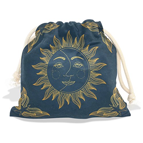 (LEISISI)/Game Room/Table Tennis/DIRECT FROM USA/LEISISI Hand-Drawn Sun Moon Durable Cotton Drawstring Tote Bags Fashion gift bags 5.5x5.5 inch