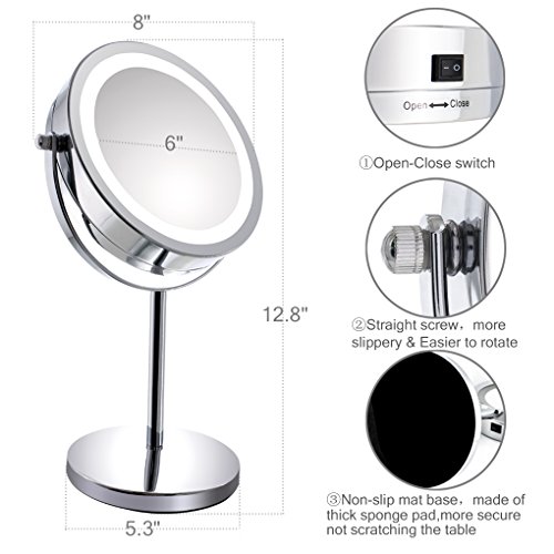 Double Side with 1x & 10x Magnification - The Amazing10x Magnification Side is Ideal for Applying Make-Up and Other Beauty Treatments that Require More Precision Extra Precision, Such As Applying Contact Lenses and Eyebrow Tweezing, the Non-Magnified Side is Perfect for Doing Your Hair and Grooming