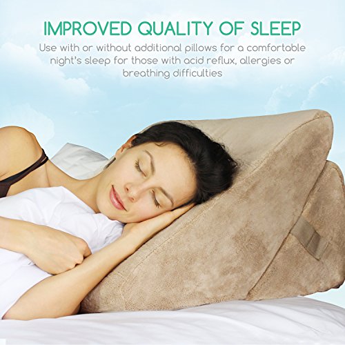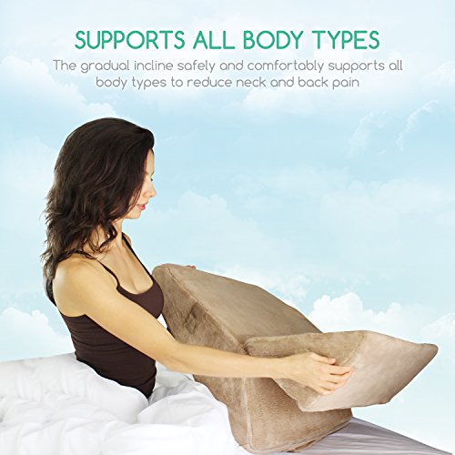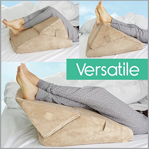 Bed Wedge by Xtra-Comfort Rest easier with the bed wedge by Xtra-Comfort. The gently sloping bed wedge can be used under the head, back or legs to provide additional support, relieving pain and pressure. The adjustable wedge allows you to choose the right amount of incline to support your body type. The firm memory foam wedge also includes a soft, machine washable cover. Improve Your Quality of Sleep: Great for relieving neck and back pain, the bed wedge also helps reduce acid reflux symptoms, snoring and respiratory issues while increasing blood circulation. The gradual slope allows your head to be elevated to reduce pressure on the neck and it can also be used under the legs to reduce back pain, varicose veins and restless leg syndrome. Provides additional support following a surgery or injury. Versatile 3 in 1 Design: The adjustable bed wedge can be used under the head, the back or the legs. Measuring 22" wide and 12" deep, the wedge easily fits on any bed to provide additional comfort and support while sitting or sleeping. A convenient carry handle makes traveling with the compact, folding bed wedge easy. Supportive Breathable Memory Foam: Constructed with a soft, high-density memory foam, the bed wedge contours to the body to provide optimal support. The comfortable foam retains its original shape for extensive usability. Use the bed wedge with your regular pillows for ultimate comfort and convenience. Removable Washable Cover: Easily removable, the zippered cover is made with a soft, breathable polyester material. The beige bed wedge cover is machine washable. What's Included: - Xtra-Comfort bed wedge
