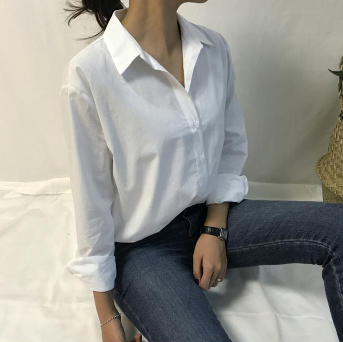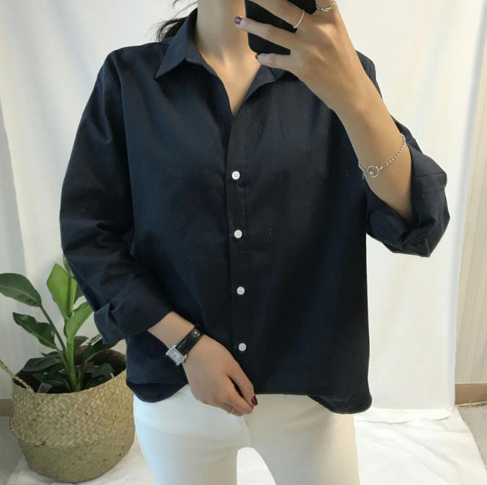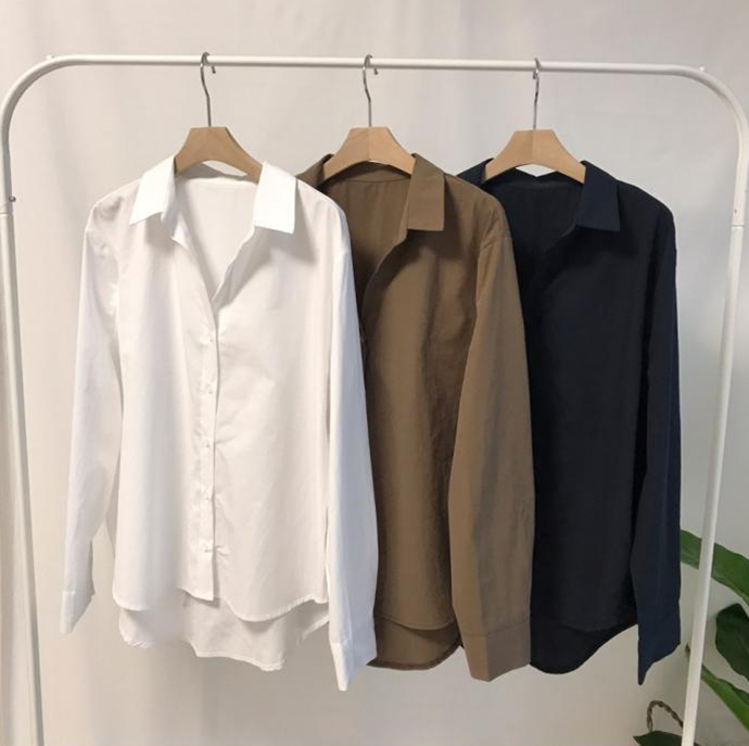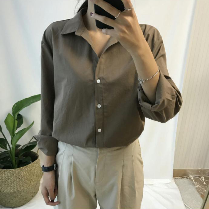 Simple Shirt Blouse Brown White Navy Ruzumet Basic Girls Southern Women