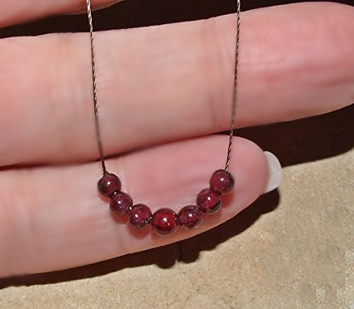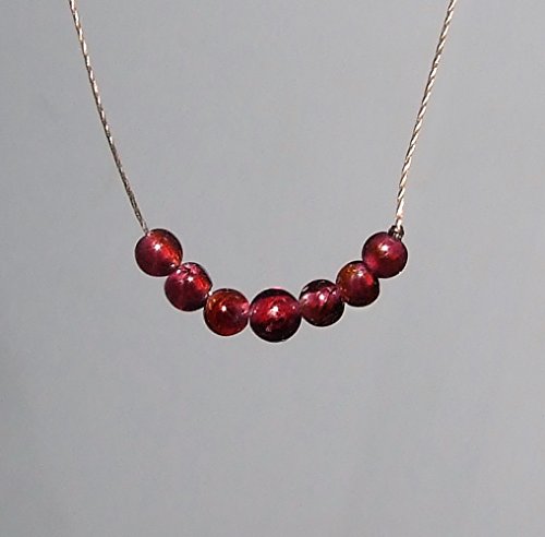 -. Title : 7 Genuine Smooth Round Red Garnets Minimalist Cord Necklace, Lucky Seven, Sterling Silver Clasp