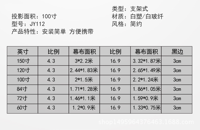 84寸家用便携式支架幕布白塑16:9/4:3KTV投影屏幕3D高清家用屏幕u0026nbsp;u0026nbsp;客户拍下产品的时候请备注自己需要的比例4:3比例正方形16:9长方形宽屏如不备注比例问题的情况下我司默认发16:9发货,提前声明!