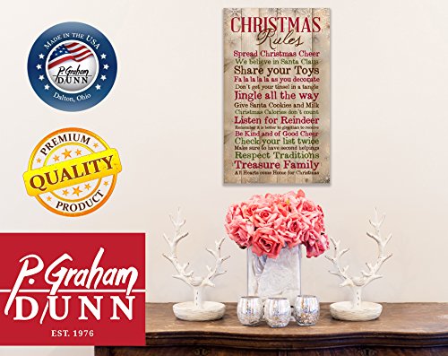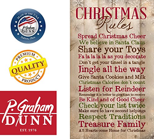 Christmas Rules Family Cheer Snowflakes 15 x 9 inch Pine Wood Plank Wall Sign Plaque
