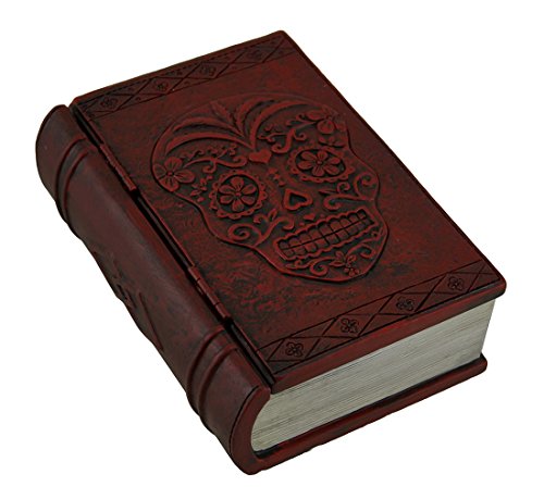 Resin Decorative Boxes Dark Red Day Of The Dead Embossed Sugar Skull Book Look Trinket Box 6 X 2 X 4 Inches Brown