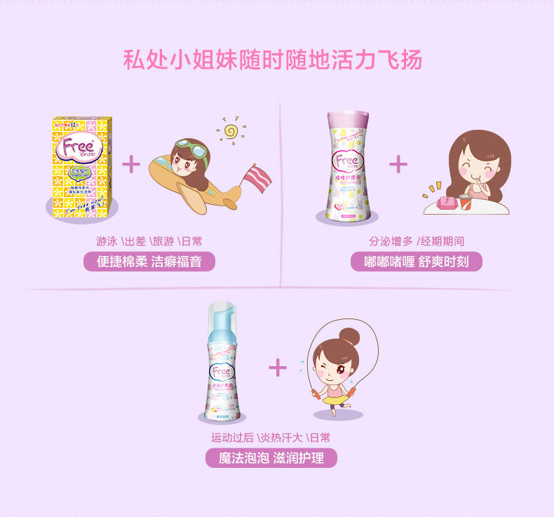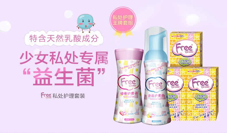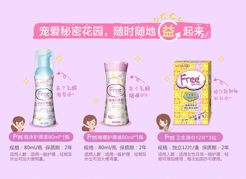 Free飞 啫喱私处清洁护理液 私处卫生湿巾 滋润温和少女护理装