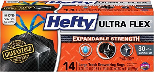 -. Title : Hefty Ultra Flex Maximum Strength Drawstring Bags, 30 Gallon, 14 Count by Hefty