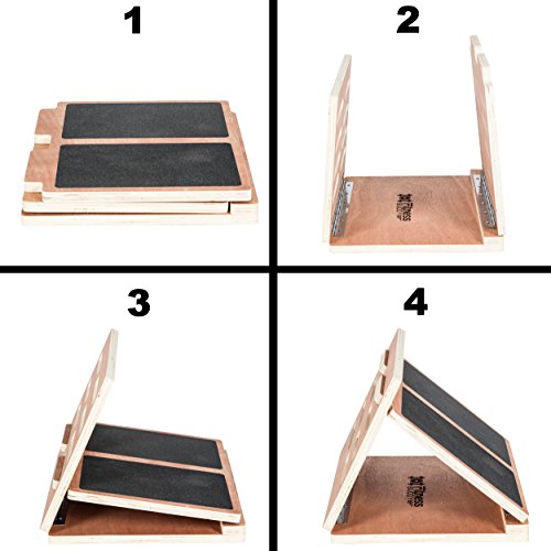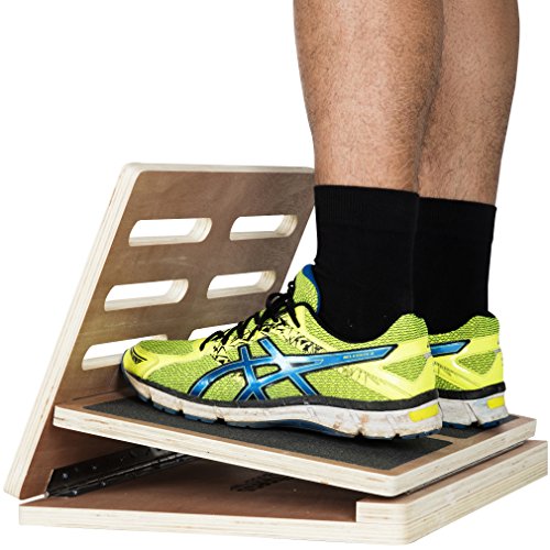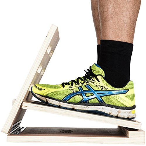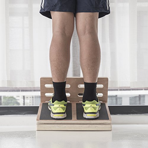 Studio : 101FitnessBuddy Publisher : 101FitnessBuddy Binding : Misc. Product Description HOW TO USE THE EXERCISE SLANT BOARD? You can use the wood incline slant board to do simple and effective daily routines to stretch important muscles, such as your calf, hamstring, soleus muscles and plantar fascia tissue.This is especially useful for injury prevention because tight muscles can put you at risk of sustaining sports injury.Stretching and releasing tight muscles increases your standing endurance and improves your overall quality of life, leading you to having a healthier and improved lifestyle.The incline slant board comes in 4 adjustable angles - Easy, Moderate, Advance, Difficult. Start from the lowest tier (Easy), and stand on the board for about a couple of minutes each time.WHAT IS PLANTAR FASCIA AND DOES IT HELP TO DEAL WITH HEEL PAIN?The plantar fascia is a thick band of rubber-like tissue attaching from your heel to your toes. Plantar fasciitis occurs when there is an overuse of this structure, leading to pain. Plantar Fasciitis can affect one's lifestyle greatly.Stretching the plantar fascia tissue helps to relieve the tightness of the tissue. In return, it allows the plantar fascia to absorb shock better during weight bearing activities such as running and walking, thereby reducing heel pain.Standing on the calf stretch exercise board also helps to stretch the Achilles tendon, thereby helping to relieve pain from the scar tissue. By stretching the calf muscles, it will decrease the frequency of reoccurrence of Achilles TendonitisWHAT ARE POSTERIOR CHAIN MUSCLES AND WHY DO WE NEED TO STRETCH THEM?Stretching your posterior chain muscles which includes your calf muscles, hamstring and lower back muscles enables you to stand upright to adopt a better posture. This will help you to relieve back pain from poor standing posture and enable you to stand for longer hours. 0