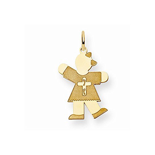 -. Title : 14K Yellow Gold Laser Cut Kid Girl in Cross Dress Charm Pendant