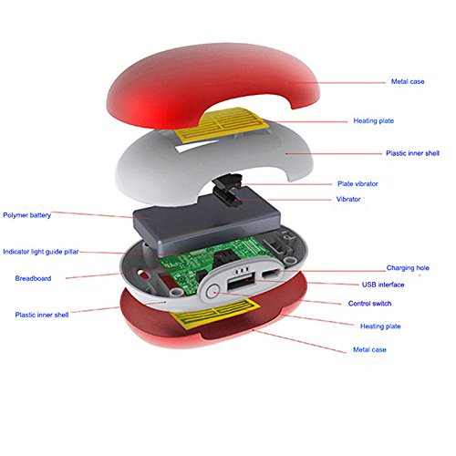 -. Feature : The P.R.Incess And The Pea Shape Rechargeable Mini Hand Po Double Sides Heating Pocket Hand Warmer with 3600mAh Power Bank / 3600mah Rechargeable battery which is compatible for IPAD,IPHONE,SAMSUNG,HTC,LG,CAMERA Devices / Rechargeable Li-Ion battery; Input: 5V-1000mA; Output: 5V-1000mA; / Have Heating function to warm hands at any time when getting cold;Massage vibration function / Battery type: Li-ion;Item include:English instruction paper+USB lin+hand warmer