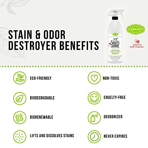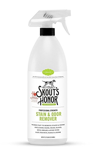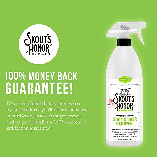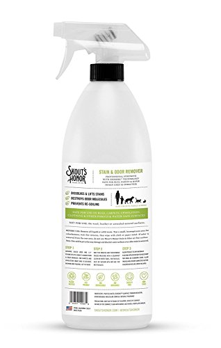 Studio : Skouts Honor Publisher : Skouts Honor Binding : Misc. Product Description All Skout's Honor products are manufactured under the California Green Chemistry initiative. They are non-toxic, rapidly biodegradable, eco-friendly, and free of hard chemicals, chlorine, and formaldehyde, making them safe to use around your pets, family, and home. Superior Product Science These all-natural, professional strength products offer Better, Faster, Stronger solutions to your pet stain and odor problems. The enzyme-free formulas are compatible with other cleaners, require no pretreatment or special storage and handling and never expire. Skout's Honor Stain Odor Remover Goes to work immediately to lift and dissolve stains at the source. Our proprietary Odor Eliminating technology destroys stinky odor molecules on contact to leave your abode looking and smelling like nothing ever happened. Ingredients Purified Water, BioKore (Surface Tension Reducer), Biodegradable Molecular Complex, Natural Trace Fragrance Directions Step 1 : Saturate soiled area and 1 - 2" perimeter with Skout's Honor Stain Odor Remover. For carpets and upholstery, make sure to saturate backing and padding. Step 2 : Wait Five Minutes and then remove excess moisture with a colorfast cloth or paper towel. For textiles, blot or vacuum with wet-vac for best results. Step 3 : Allow product to dry naturally. A second application may be necessary for dried or stubborn stains. Allow treated area to dry completely before children or pets re-enter the area. 100% Satisfaction Guarantee Skout's Honor cleaners and deodorizers are super powerful and effective - they really work! But if you find that they don't perform as promised, we stand behind a 100% Customer Satisfaction Guarantee. Simply reach out to us and we'll provide you with a full refund, hassle-free. 0