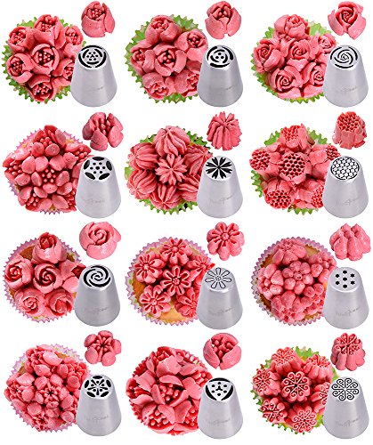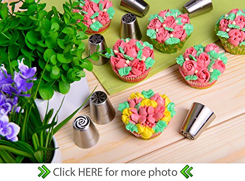 - EASY TO USE AND KEEP cake decorating tips are non-corrodible, suitable for dishwashers, non-toxic, do not deform, easy to use for professionals and beginner pastry-cook, one step to create beautiful flowers on cupcakes with Russian piping tips set newest