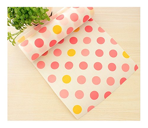 -. Feature : Size : 11.81*196.85inch/30*500cm ,100g/Roll . / Package including : 5 rolls of assorted non adhesive dot drawer liner as pic shows. / Beautiful fresh polka dot design handcraft drawer liner for Kitchen . / Waterproof and non slip shelf liner for kitchen . / Perfect for drawer,dining table,shoe rack,wardrobe,desk and so on .