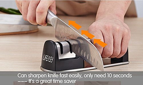 Lifeasy - Stainless Steel Knife Sharpener with 2 Stage Knife Sharpening System for Steel Knives in All Sizes