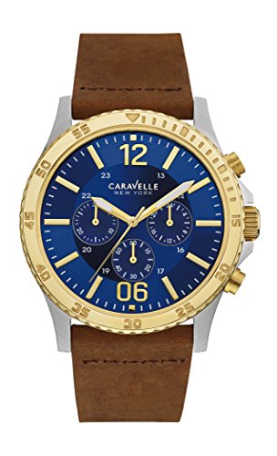 -. Binding : Watch -. Brand : Caravelle New York -. Department : mens -. EAN : 0042429538788 -. Feature : Chronograph function / Stainless steel gold-tone case / Quartz Movement / Case Diameter: 41mm / Water Resistant To 30m (100ft): In General, Withstands Splashes or Brief Immersion In Water, but not Suitable for Swimming or Bathing -. Label : Bulova Corporation -. Manufacturer : Bulova Corporation -. Model : 45A135 -. MPN : 45A135 -. PackageQuantity : 1 -. PartNumber : 45A135 -. ProductGroup : Watch -. ProductTypeName : WATCH -. Publisher : Bulova Corporation -. Studio : Bulova Corporation -. Title : Caravelle New York Men's Quartz Stainless Steel and Brown Leather Dress Watch (Model: 45A135) -. UPC : 042429538788