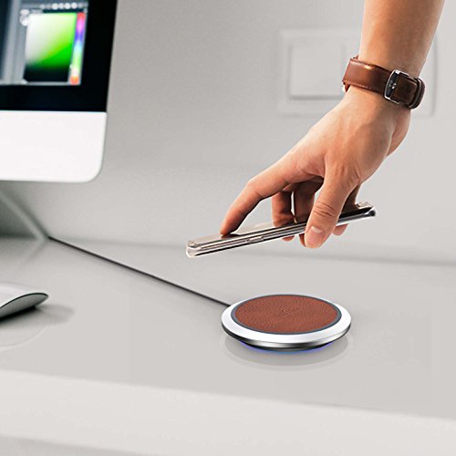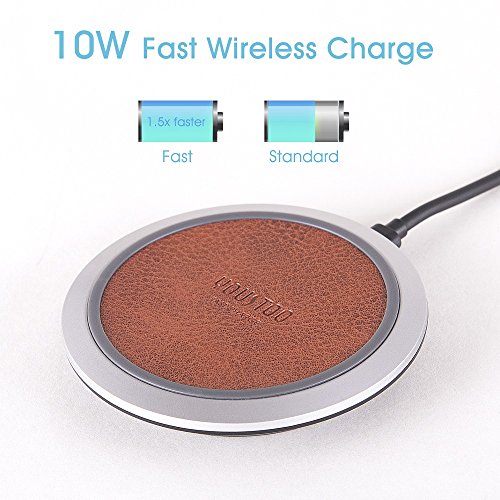 Fast Wireless Charger, YOUSTOO FC60 Fast Wireless Charger Brown Greece Lichee Pattern PU Leather Portable Qi Wireless Charging Pad for All Qi-Enabled Device