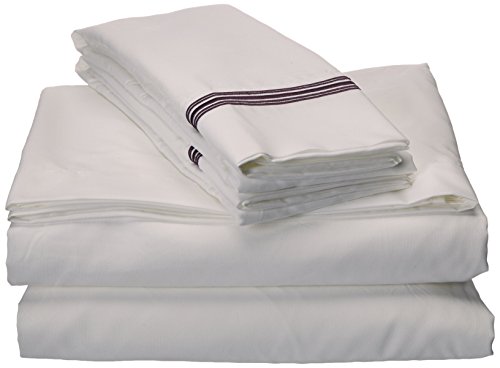 Clara Clark 1800 Collection 5-Stripe Embroidered Designer Sheet Set, King, Purple