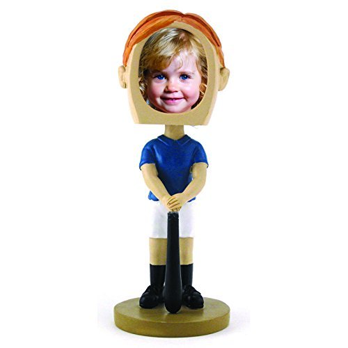 -. Feature : Adorable 6 1/2 inch Tall Female Softball Photo Frame perfect for softball players and fans / The picture slips in a slot on the top of the bobble head / Use the lens as a template to trim your photo to the exact size you need / Holds one 1-13/16" round photo / Made out of resin and hand painted