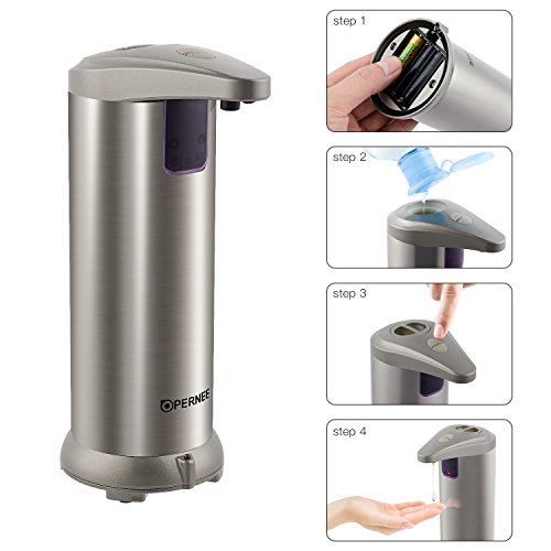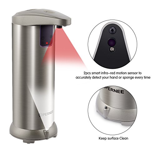 Soap Dispenser, OPERNEE Automatic Hands Free Fingerprint Resistant Stainless Steel Soap Dispenser, IR Infrared Motion Sensor Touchless Autosoap Dispenser for Kitchen Bathroom[Second Generation]