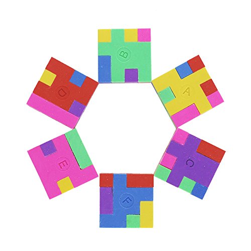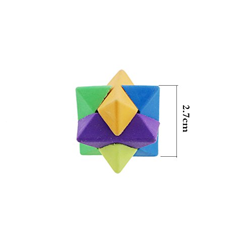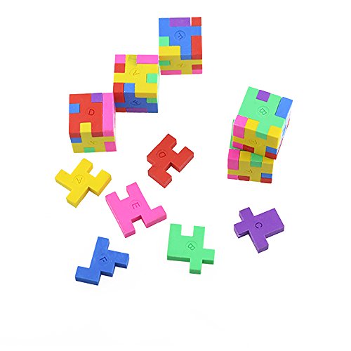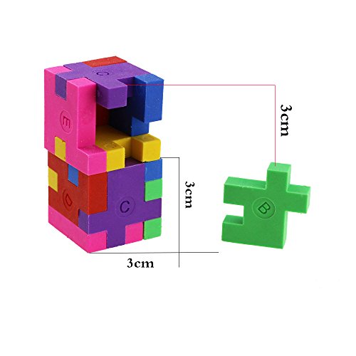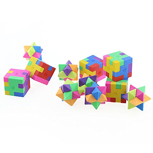 Comes in a pack of 12 assorted eraser cubes. Each cube can be disassembled into smaller separate pieces.