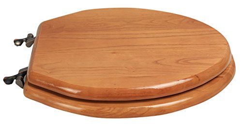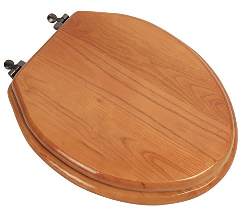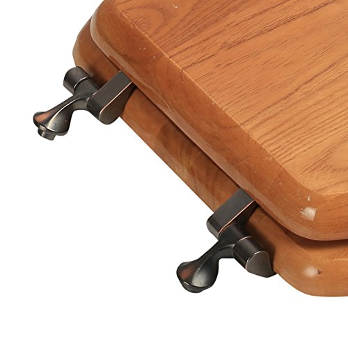 -. Title : Bath Décor 5F1E2-17OB Elongated Toilet Seat in Traditional Design with Oil Rubbed Bronze Metal Hinges, Natural Oak Finish