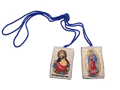 Scapular or Escapulario Del Divino Rostro or Divine Face with the Virgen De Guadalupe Our Lady of Guadalupe (Blue)