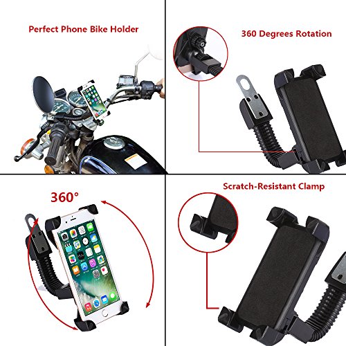 Universal Compatibility: Our motorcycle phone mount phone holder mounts mobile devices from 1.6 inches to 3.6 inch in width, covering most popular cellphones, including Apple iphone 7 6s 6s Plus 6 6 Plus 5s 5c 5 SE, iPod Touch, Samsung Galaxy S7 S7 Edge S6 S5, S4, Galaxy Note Series, HTC, LG, etc. ; the clamp fits handlebars up to 27mm in diameter