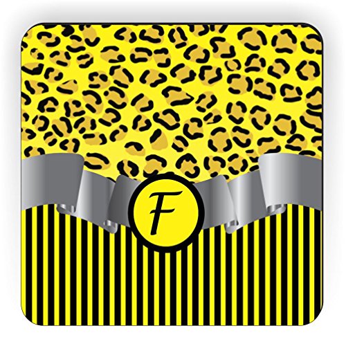 Rikki Knight Letter "F" Initial Yellow Leopard Print and Stripes Monogrammed Design Square Fridge Magnet
