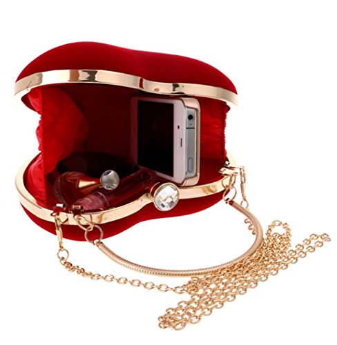 Product Description Bring out the charm in your look with the pretty Nodykka velvet frame evening clutch handbag! The velvet fabric material with kiss lock closure is really an accent to your dressy outfit for dinner or brunch and bride's outfits. The main compartment holds your keys, wallet, sunglasses,phone, keys, lipstick, comb or small cosmetic case, credit or id cards, some cashes or your smaller essentials for easy access Detail Color:Red/Blue/Black/Pink Carrying Option: Detachable metal chain shoulder strap(120 cm/47.2 inch) and rolled top handle Occasion: Wedding/Cocktail Party/Evening/Prom/Graduation Please note, the hardware color and interior lining may differ from the color shown in the photo.