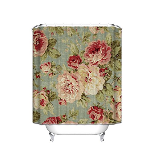 SUN-Shine Custom Beautiful Vintage Rose Floral Print Shower Curtain for Bathroom Fabric Waterproof With Hooks 72x72IN