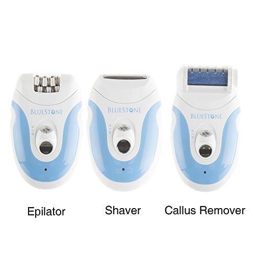 ReleaseDate : 2016-10-03 Studio : Trademark Global - PCA Publisher : Trademark Global - PCA Binding : Health and Beauty Product Description The Bluestone 3-in-1 Rechargeable Shaver, Epilator and Callus Remover is an effective and gentle way to remove calluses and unwanted hair from legs, face, underarms, bikini line and other sensitive areas with no irritation. This compact device is easy to use. Simply place the head with one of the three attachments on: Epilator removes hair directly from the root in one easy stroke for longer lasing smooth skin, Shaver has an ergonomic design allows you to closely follow your body contours for the smoothest skin possible, Callus Remover roller gently removes calluses and coarse skin from your hands and feet.Features a stainless steel blade and a light to make even the finest hairs visible. The attachments are easily removable for cleaning with the included cleaning brush. The cordless operation and lightweight design makes it easy to give yourself smooth skin at home or while traveling without spending hundreds of dollars at the salon. 0