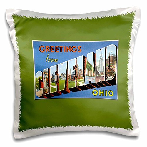 3dRose pc_170547_1 Greetings From Cleveland Ohio Scenic Postcard Reproduction-Pillow Case, 16 by 16"