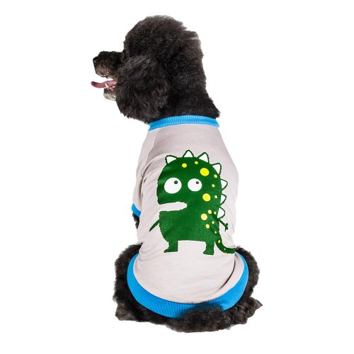 Blueberry Pet Pack of 1 Dog Clothes 10" Back Length Alien the Dinosaur Cotton Dog Shirt in Grey for Small Dogs