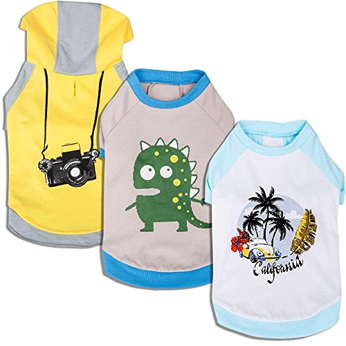 BLUEBERRY PET SHIRTS FOR DOGS WITH VARY PACKAGE, PACK OF 1 OR PACK OF 3 DOG T-SHIRT WITH DINOSAUR CAMERA AND CALIFORNIA PATTERN