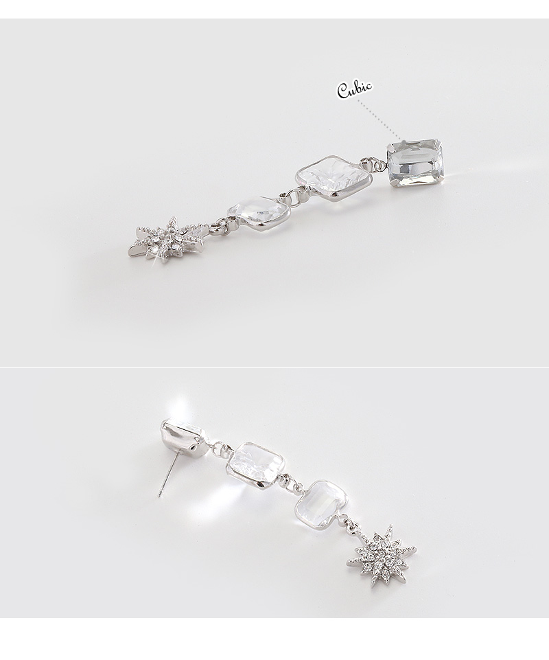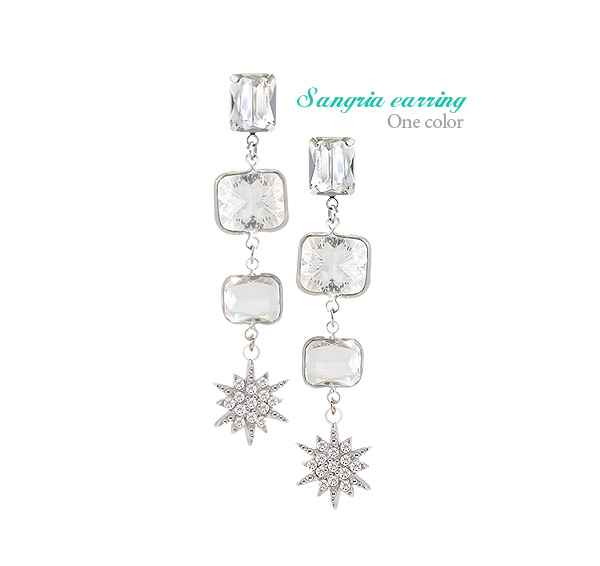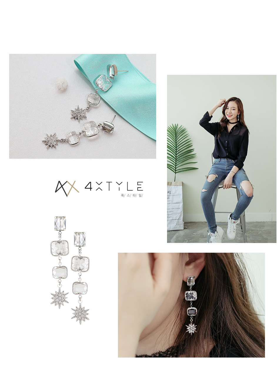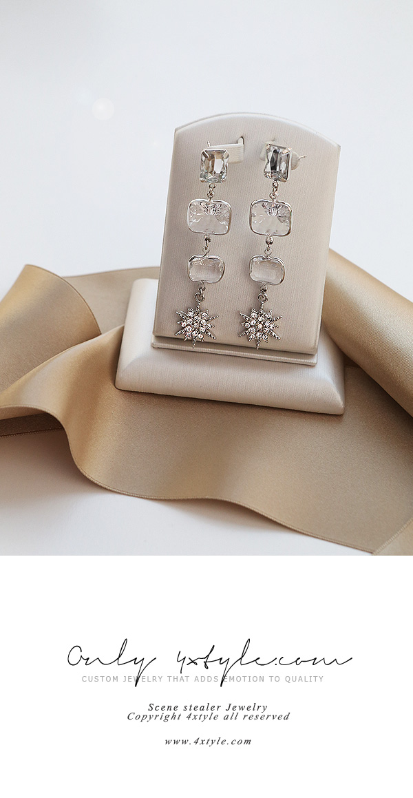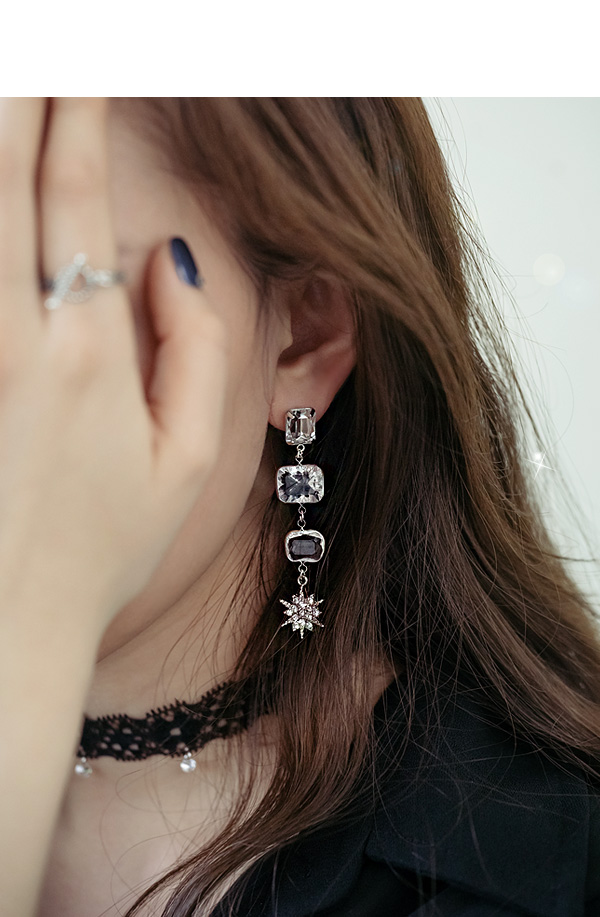 큐빅장식으로 화려하고 시크한 무드의 롱 이어링.