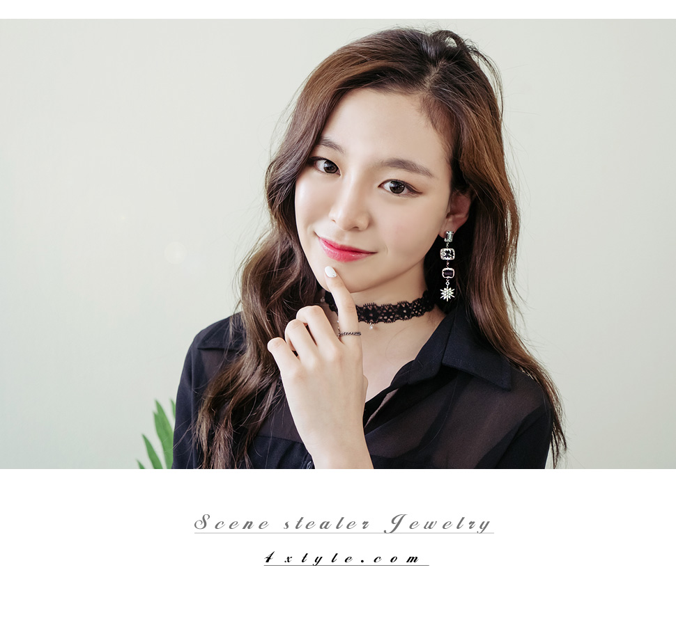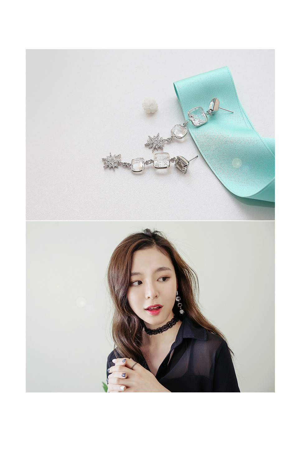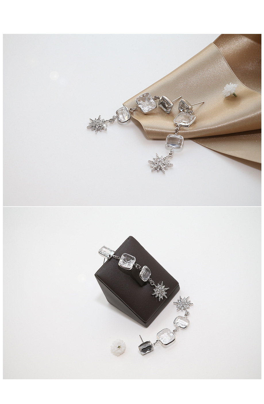 큐빅장식으로 화려하고 시크한 무드의 롱 이어링.