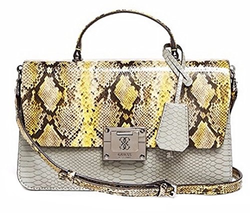 Luxe faux leather is detailed with a python-embossed construction, while a logo plaque emblem, multiple pockets and signature-print lining make this top handle crossbody bag your go-to accessory for girls' night out.Feature