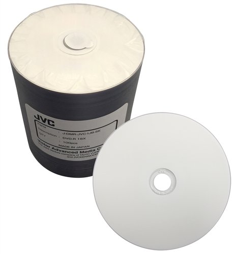 100 JVC Taiyo Yuden 16X DVD-R 4.7GB White Inkjet Hub (J-DMR-JVC-IJB-SK)