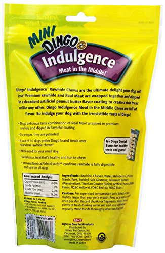 • Dingo delicious taste combination of Real Meat wrapped in premium rawhide and dipped in peanut butter flavor coating