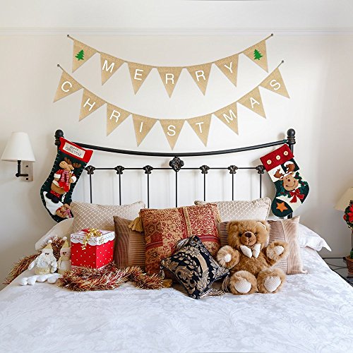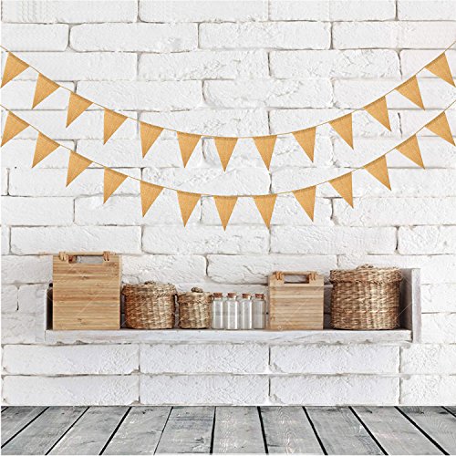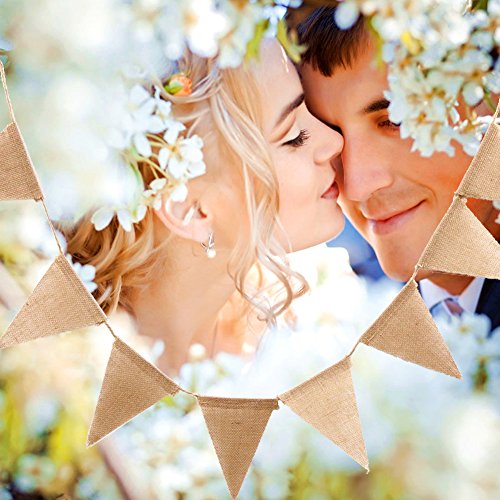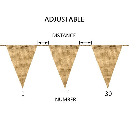 - Burlap banner flags were stringed by a 10feets jute rope, the distance between flags can be freely adjusted depending on your needs, as well as the number of flags.