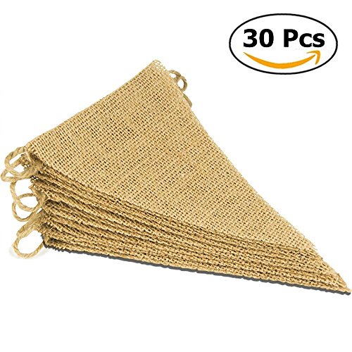 Burlap Banner with 10 Feet Jute Rope for Wedding, Birthday Party, Babe Shower and Camping Decoration 30Pcs