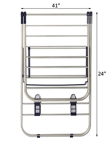 No need assemble - Ready to use when you receive it. Great clothes drying rack for energy saving and gentle drying make your clothes last longer; Space-saving storage and easy move - 41"L x 24"Wx 2.5"H (folded dimension)